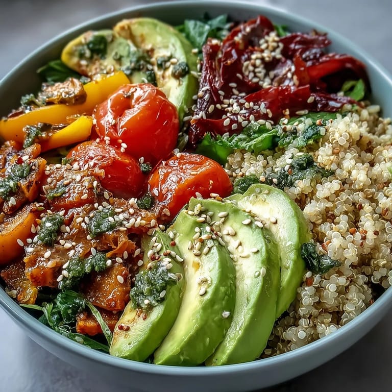 The beauty of this bowl is that it's genuinely adaptable without falling apart. I've swapped the chickpeas for crispy baked tofu (press it first, cube it, toss with oil and spices, then roast at 400 degrees for 25 minutes), tempeh, or even grilled chicken if you're not vegetarian. The structure stays intact because the quinoa is substantial enough to anchor whatever you put on top. Sometimes I add roasted sweet potato chunks or steamed broccoli florets, and the bowl feels completely different while still being itself.