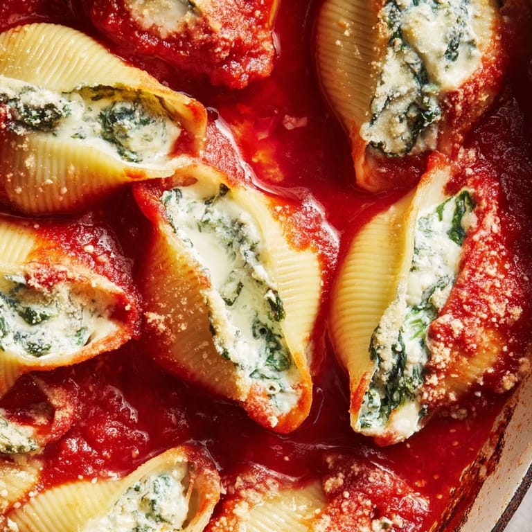 Pin it My tiny apartment kitchen smelled like garlic and tomatoes, which was basically the best welcome home possible after a long Tuesday. I had been craving something cozy and Italian but wanted to make it feel special, not just another pasta dinner. Standing there squeezing frozen spinach between my hands, I watched the water turn green and laughed at how unglamorous the prep work always looks compared to the final result. Sometimes the messiest ingredients create the most beautiful dinners.